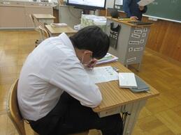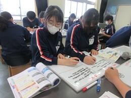 労働環境の変化と課題について学習した後に、復習に取り組んでいました。