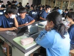今日の3時間目に、1年3組の理科で授業公開を行いました。ICT機器を効果的に使い、生徒たちが自主的に実験を行い結果をまとめていました。とても勉強になる授業でした。