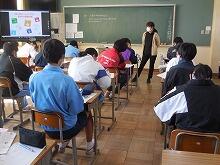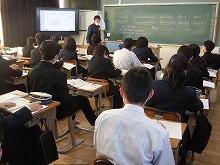 【校内授業研究】1年1組で「社会」の授業研究会を行いました。テーマは「ICT機器を活用した授業の展開」として、様々なデータや写真などをタブレットで確認し学んでいました。