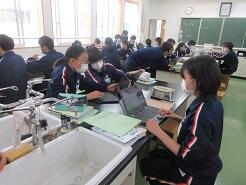 自分たちの班で実験した動画を、クラスルームで共有するための作業を行っていました。