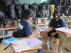 単語の並び順の学習で、グループで英文パズルに取り組んでいました。