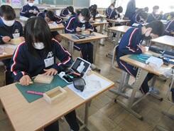 一人ずつ問題を出し、わかった生徒が挙手して答える授業が進められていました。