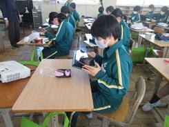 タブレットを使い、「語る大地」の単元のまとめを、クイズ形式で行っていました。