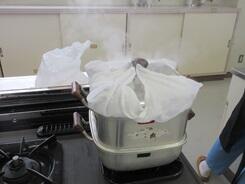 今日の2時間目に、3年2組が幼児のおやつ作りで、蒸しパンの調理実習を行いました。蒸し器を使うのはほとんどの生徒が初めてのようでしたが、おいしそうな蒸しパンが出来上がっていました。