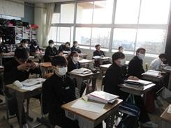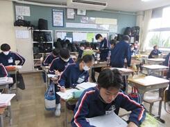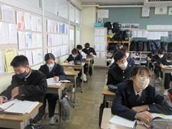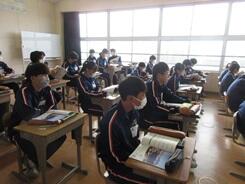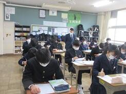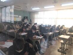 今日の5時間目に、3年生が私立高等学校入試事前指導を実施しました。冬休み中に私立高等学校の入試がスタートします。万全の体調で、もてる力が十分発揮できることを期待しています。校長の話は、これから受ける全ての試験が本番、○○の練習とか、○○の力試しというような気持ちで受けないように。全てが本番、でないと本当の本番に力が出せません。