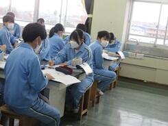 文法、漢字等の復習で、聞き取りテストに取り組んでいました。