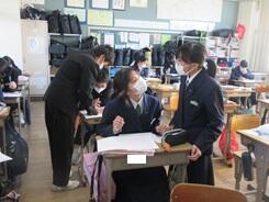 今日の1時間目、3年3組の社会科の授業を見ていると、欠席者の配付プリントを机の中に入れている女子生徒が目に留まりました。とても優しい行動に、ちょっと温かい気持ちになりました。今日から10日(日)まで、人権週間になります。こんな優しい行動が、人権を守ることにつながります。人権週間初日にこのような行動が見られて嬉しかったです。