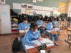 枕草子、徒然草、平家物語の暗唱に取り組んでいました。練習してから、テストを受けていました。