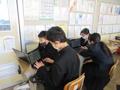 気象要素を記録し、それを天気図に表す授業が進められていました。