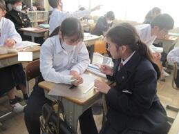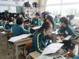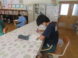 ブックカバーづくりに取り組んでいました。完成した生徒もいました。