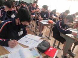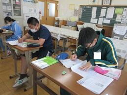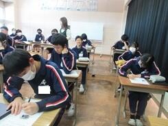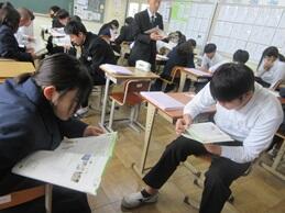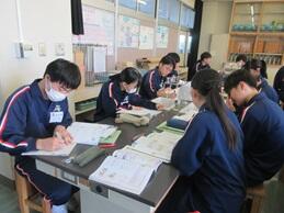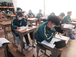 学習確認テストに取り組んでいました。ここまでの学習の成果が試されます。入試まで、がんばれ3年生。