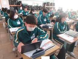 アルトリコーダーで「ふるさと」を練習していました。この後、タブレットを使ってCMソングづくりに取り組むようです。