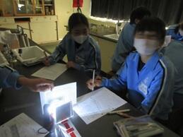 電流の強さは、何で決まるかを確かめる実験に取り組んでいました。