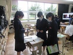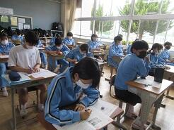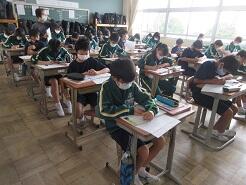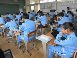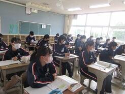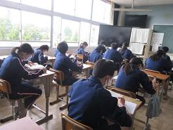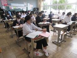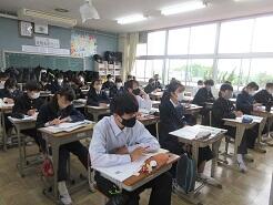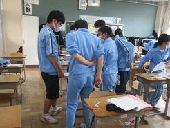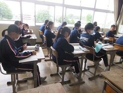 今日も授業を見て歩いて3年6組の教室に入り、窓際に移動しようとした時、1番後ろに座っている女子生徒が机をさっと引いて、自分が歩くスペースを確保してくれました。何気ないこの気配りがとても気持ちよく感じました。こんな気配りができる生徒をたくさん育てたいと思いました。