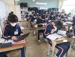 自分たちの班で実験した動画を、クラスルームで共有するための作業を行っていました。
