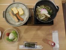 【給食メニュー】ご飯(検食用)、ソースメンチカツ、おひたし、かんぴょう入りかき卵汁です。「かんぴょう入り卵汁」は栃木県の郷土料理です。皆さんもご存じのとおり栃木県はかんぴょうの生産量が日本1位で、99%以上生産しています。今日も美味しくいただきました。ごちそうさまでした。