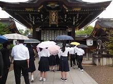 旅館にお礼を言ってバスに乗り込むときに雨が降り始めていました。学問の神様で有名な「北野天満宮」を見学、雨の中のクラス写真でしたが、この場所で記念写真が撮れるのはほとんどないとのこと。良い思い出となりました。