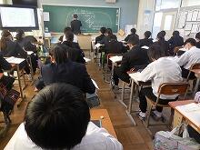 【テストの様子】1時間目の各クラスを見てきました。室内は空調設備を点火しつつも、換気をしてテストに臨んでいました。最後まで諦めず頑張って問題を解いてほしいです。