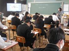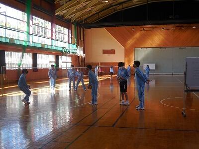 【授業研究会】保健体育の授業研究を行いました。2年3組の「ソフトテニス」でシュマッシュをゲームで使うことをねらいに行いました。みんな真剣に取り組んでいました。