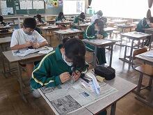 【テストの様子】1時間目の様子を廊下から見てきました。全員集中して問題に取り組んでいました。(ガラス越しの撮影もありますので御了解ください)