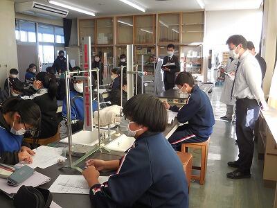 1年5組「理科」ちからの大きさの測り方について実験を通して、バネののびと力の大きさにどのような関係があるのか考えていました。