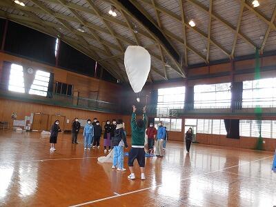 今日の様子(1/25) 投稿日時 : 2023/01/25 HP担当者 出勤時間帯に急に降雪となり、瞬時に積もり始めました。各道路では渋滞が生じ、いろいろなところに支障を来しました。生徒は保護者の方に送ってもらったり、自転車や徒歩で登校したりと様々でしたが、無事、授業が行われています。今日は気温も上がらず、路面凍結が心配されますので、明日は安全に気をつけて登校してください。【朝の様子】校庭の様子 7:30撮影【熱気球体験】8・9組では外部講師を招き「熱気球体験活動」を行いました。ビニル袋を活用し、ガスを注入させて高く飛ばす活動をしました。高く上がったときの生徒の歓声が印象的でした。 【給食メニュー】ご飯、牛乳、やしおます塩こうじ焼、えび大根、サツマイモ汁です。えび大根は県南地区の郷土料理で、海なし県の栃木県なので沼や川で採れる川えびを使った料理が多いそうです。今日も美味しくいただきました。ごちそうさまでした。【昼休みの様子】校庭から歓声が聞こえています。雪合戦なのでしょうか。雪を投げ合う姿が微笑ましいです。