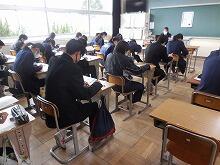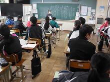 今日の様子(1/30) 投稿日時 : 2023/01/30 HP担当者 寒い日にも慣れてきましたが、起きる時間が少しずつ遅くなっている気がします。今週は降雪の予報はないようですが、乾燥注意報が発令されていますので、火の取り扱いに気をつけたいですね。 さて、1月29日(日)に東関東アンサンブルコンテストに出場した「打楽器三重奏」「金管六重奏」の生徒及び保護者の皆さんご苦労様でした。登校早々にそれぞれの代表生徒が楽しんで演奏できたと報告に来てくれました。【授業の様子】1年1組「国語」 1年2組「社会」 1年3組「美術」 1年4組「理科」 1年5組「数学」 8・9組「音楽」 2年1組「国語」 2年2組「国語」 2年3組「英語」 2年4組「社会」 2年5組「理科」 2年6組「英語」 3年1組「理科」 3年2組「英語」 3年3・4組「数学」3年3・4組「数学」 3年3・4組「数学」 3年5組「英語」 3年6組「社会」 【給食メニュー】牛乳パン、牛乳、きびなごフライ、グリーンサラダ、ミネストローネです。「きびなご」はニシンや鰯の仲間で、10センチメートルぐらいの魚です。今日は「かみかみメニュー」でよく噛んでいただきました。ごちそうさまでした。