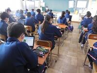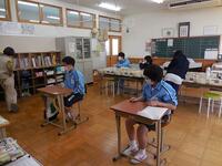 朝からどんよりとした曇り空で午後には降雨が予想されます。今日は来年度入学する児童178名のオリエンテーションが行われています。慣れない自転車に乗り、不安そうに体育館に入り、学習や生活について説明を聞いていました。一方1・2年生は最後の授業日となりました。