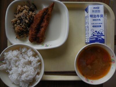 【給食メニュー】麦ご飯、牛乳、ししゃも、おから入り煮、ピリ辛味噌汁です。今年度最後の給食となりました。1年間を通して地元の食材や食べたことないメニューなど食に関して多くのことを学ぶことができました。給食センターで働く栄養教諭や調理員の方々、そしてセンター所長さん、各小中学校には配送・運搬してくれる方々に感謝申し上げます。ありがとうございました。