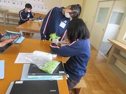 栽培しているリーフレタスの栽培日誌を書いて、収穫をしていました。