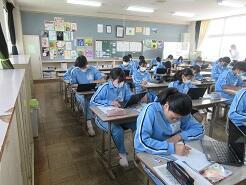 小説「形」の批評しようというめあてで、タブレットを使って自分の考えを打ち込んでいました。