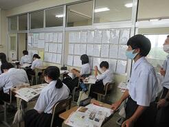 今日の2年生の戦争体験講話が終わった後の片付けを、2年2組が実施していました。その様子を見ていると、一人の女子生徒が周りに的確な指示を出して、てきぱきと働いているのが目にとまりました。名前を聞いて褒めるとともに、担任にも褒めてくださいと伝えました。褒めることは、やっぱり気持ちがいいものです。