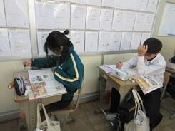 ニュースの見方を考えようの単元で、自分で組み立てたニュースを発表して、相互評価する授業が進められていました。