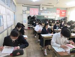 掃除の時間廊下を歩いていると、3年2組、2年1組、2年4組の廊下が、とてもきれいに磨かれていることに気づき、何日間か見ていましたが、その場所には、必ずきれいにしようとこだわりをもって真剣に磨いている生徒がいました。そんな生徒たちを見ていると、とてもうれしくなってきます。このような生徒が一人でも多くなるように指導していきたいと思いました。