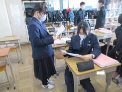 19日(金)、三者面談中に体育館の鍵が閉められてしまい、靴がとれなくなってしまったバレーボール部1年生女子がいたので、鍵をもっていっしょに靴を取りに行きました。そこでもう一足先輩の靴があったので、それも出しといてあげるように指示すると、まずは先輩の靴を出してから、自分の靴を取っていました。自分の物より、人の物を先に出した様子を見て、とてもうれしくなりたくさん褒めました。とてもいい光景でした。