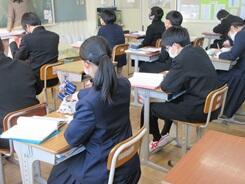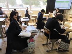 大気の動きと日本の四季の積み上げプリントに取り組んでいました。