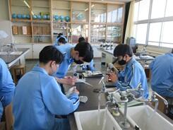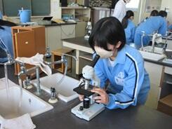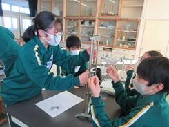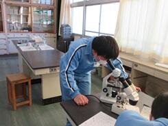 顕微鏡を使って、天然の物質と人工の物質の特徴を調べていました。