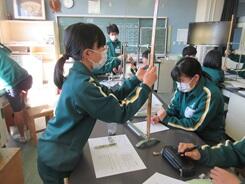 力の大きさと、バネののびの関係を調べる実験に取り組んでいました。