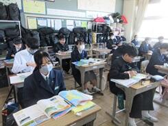 昨日の掃除の時間、職員室から印刷室へ行こうとしたときに、掃除に来ていた3年生男子3名と同じタイミングになってしまいました。すると、一人の男子が「どうぞ」と、先に行くように通路を譲ってくれました。そのちょっとした気遣いがとてもうれしかったです。世の中を渡っていく上で、気遣い大切だと再確認できました。