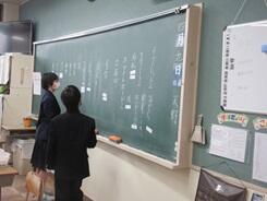 「未来へ」の詩で、詩に描かれていることを、連ごとに考える授業が進められていました。