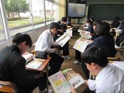 これから始まる社会の授業のガイダンスのあとに、復習に取り組んでいました。