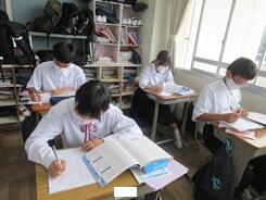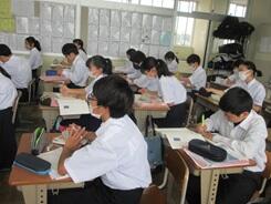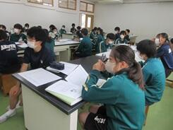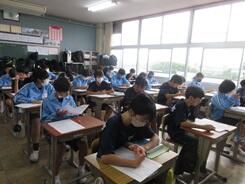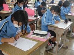 今日の5、6校時は、先日実施した「職業人に聞く」の事後指導として、ふりかえりシートの記入と、講師の方々へのお礼の手紙書きを実施しました。どこの講座も、真剣に心を込めて手紙書を書いていました。