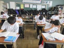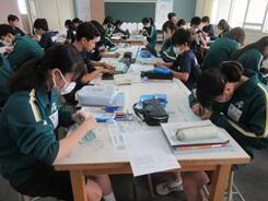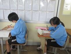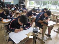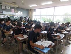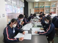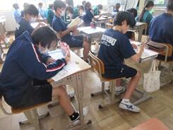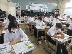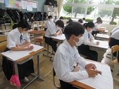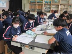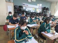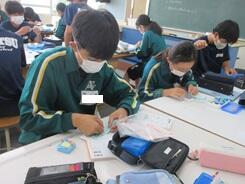 今日の5、6校時は、先日実施した「職業人に聞く」の事後指導として、ふりかえりシートの記入と、講師の方々へのお礼の手紙書きを実施しました。どこの講座も、真剣に心を込めて手紙書を書いていました。