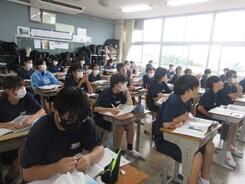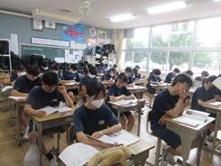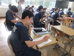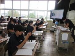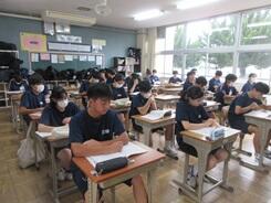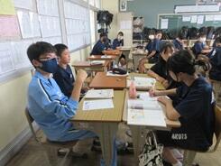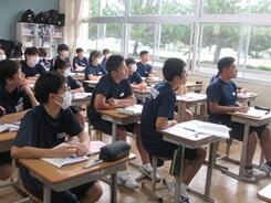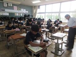 今日のローテーション道徳を見て歩いているとき、あるクラスで、担当教員の話を、ほとんどの生徒がうなずきながら聞いているクラスがありました。その生徒たちの素直な姿を見ていたら、とても嬉しい気持ちになりました。きっとこの生徒たちは伸びると思います。さて、どのクラスでしょう。今日の写真をよく見ると、何となくわかると思います。