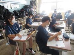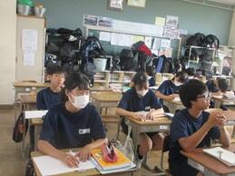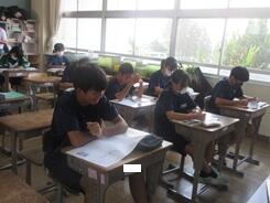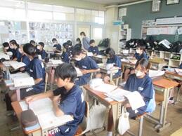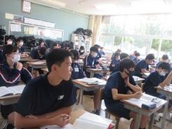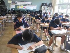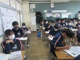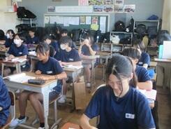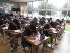 今日の2時間目に、町教育委員会が教職2年~4年目の教員の授業力向上を目的に実施している授業支援訪問を、3年3、4組の数学の授業で実施しました。数学科4年目の教員ですが、とても丁寧な授業で、順調に成長していることが感じられました。今日の授業を基に、さらに成長していくことを期待しています。