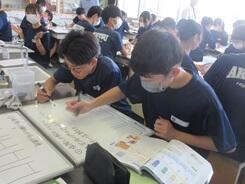 今日の3時間目、3年3組の理科が、授業公開で行われました。計画的に生徒たちが考え、それをまとめ、表現する場が設定されている授業で、生徒たちは生き生きと活動していました。学ぶべき点がたくさんある授業でした。