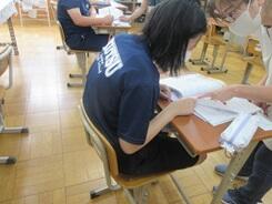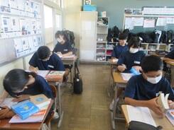 朝、教室を見て歩いていると、いつも2年1組の教室は、1番先に来た男子生徒が教室の環境を整え、学習や読書に取り組んでいます。それが、いつもの日常的な光景になっています。何時頃来ているのか聞いてみると、いつも同じくらいの時間に着いて同じように活動しているとのことでした。素晴らしい生徒です。