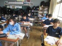 今日の1年5組の、栄養教諭とのTT授業を見ているとき、1番後ろに座っている女子生徒の消しゴムが落ちたので拾って渡しました。すると「ありがとうございます。」という言葉が返ってきました。とても気持ちがよかったです。当たり前のことを当たり前にできる生徒をもっと増やしたいと思いました。