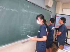 グループで、身近な友人や先生について、基本的な情報を紹介し、誰かを当てる活動に取り組んでいました。