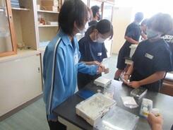 食塩、デンプン、炭素、硫酸銅を水に溶かして、物質の溶け方について学習していました。